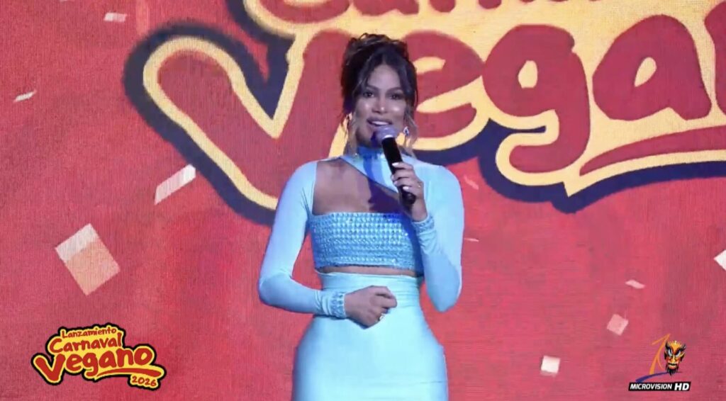 La parte musical de la presentación del Carnaval Vegano 2026 estuvo a cargo de Ebenezer Guerra, bajo la conducción de la destacada presentadora de televisión Caroline Aquino.